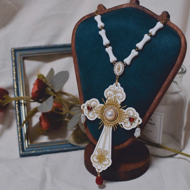 昔破った小さな約束 罪を贖うように月が笑った ____________________ アクリルから切り出した オリジナルのパーツを使った首飾りです。 BIGで存在感抜群な十字架があなたのコーデのアクセントになります。 ____________________ ▽サイズ:トップ部分約12cm ▽金具:真鍮 ===================== [ご注意] ※ サージカルステンレスではありません。金属アレルギーの方は着用をお控えください。 ※ 無理に曲げたり引っ張ったりすると、破損の原因になりますのでお気をつけください。 ===================== 着用イメージ協力 lián はす様 https://x.com/lian_hs_xxx