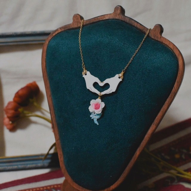 愛してると囁いた声が 誰かを撫でるふりをして じぶんの影を撫でていた ____________________ アクリルから切り出した オリジナルのパーツを使った首飾りです。 球体関節を模した造形でドール好きさんにも おすすめな一品です。 2025.12.12 こちらはヴィンテージのセルロイドフラワーのパーツを使用した作品となっております。 セルロイドのパーツは高価なため、通常よりも少しお高めな価格でのご提供となっております。ご了承ください。 ____________________ ▽サイズ: チェーン:約40cm トップ部分:全長約4〜5cm ▽金具:真鍮 ===================== [ご注意] ※ サージカルステンレスではありません。金属アレルギーの方は着用をお控えください。 ※ 無理に曲げたり引っ張ったりすると、破損の原因になりますのでお気をつけください。