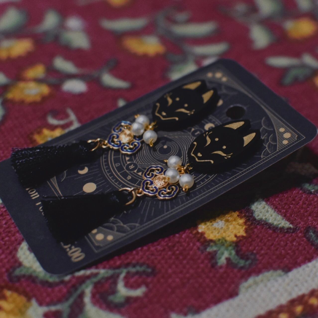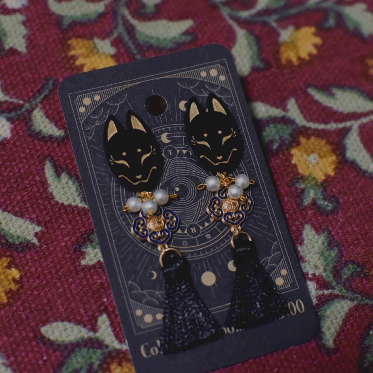 【狐ノ嫁入】月夜の黒狐 ピアス