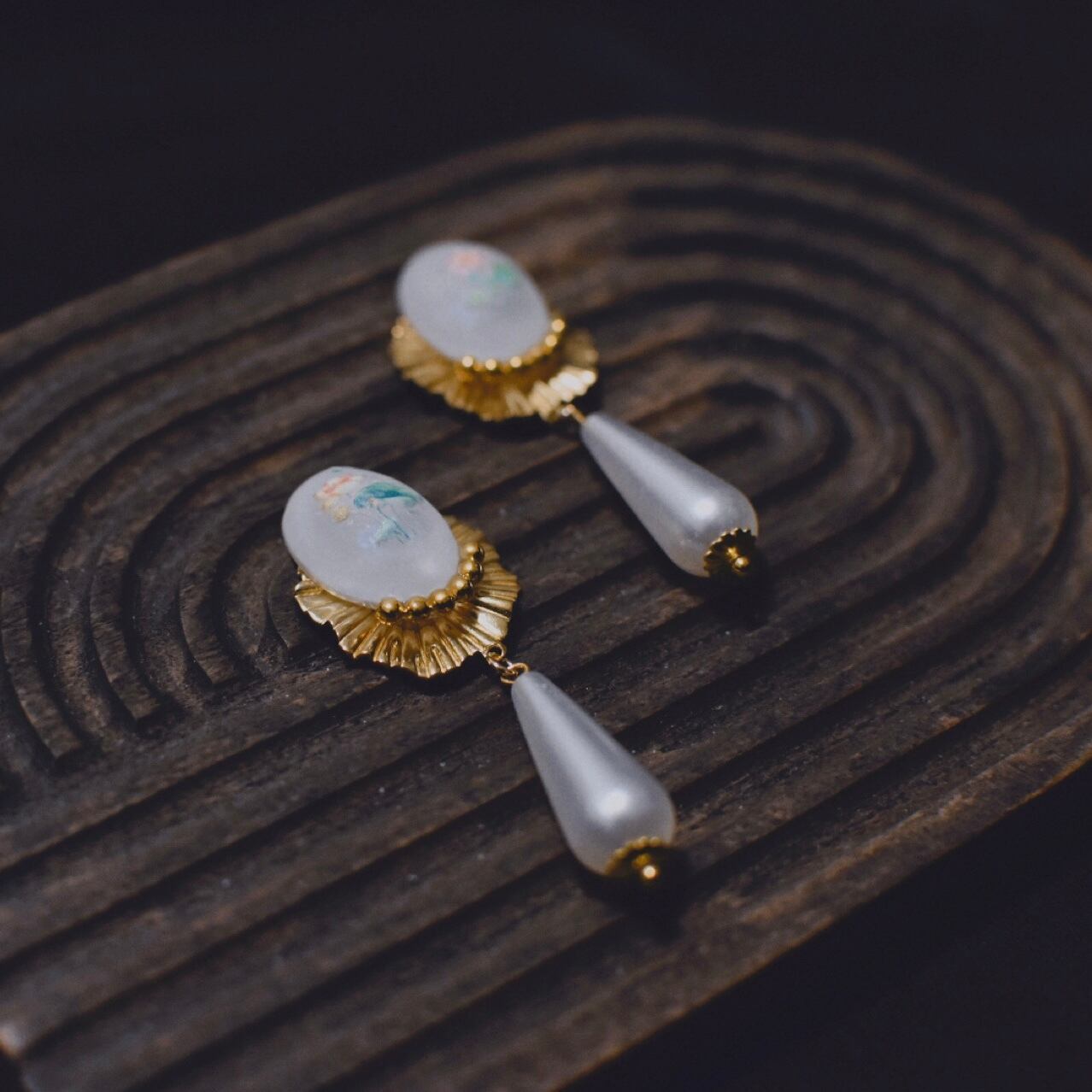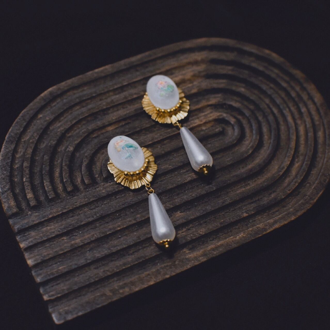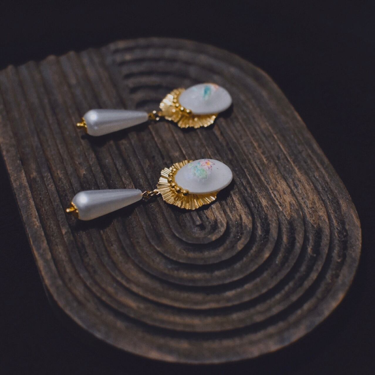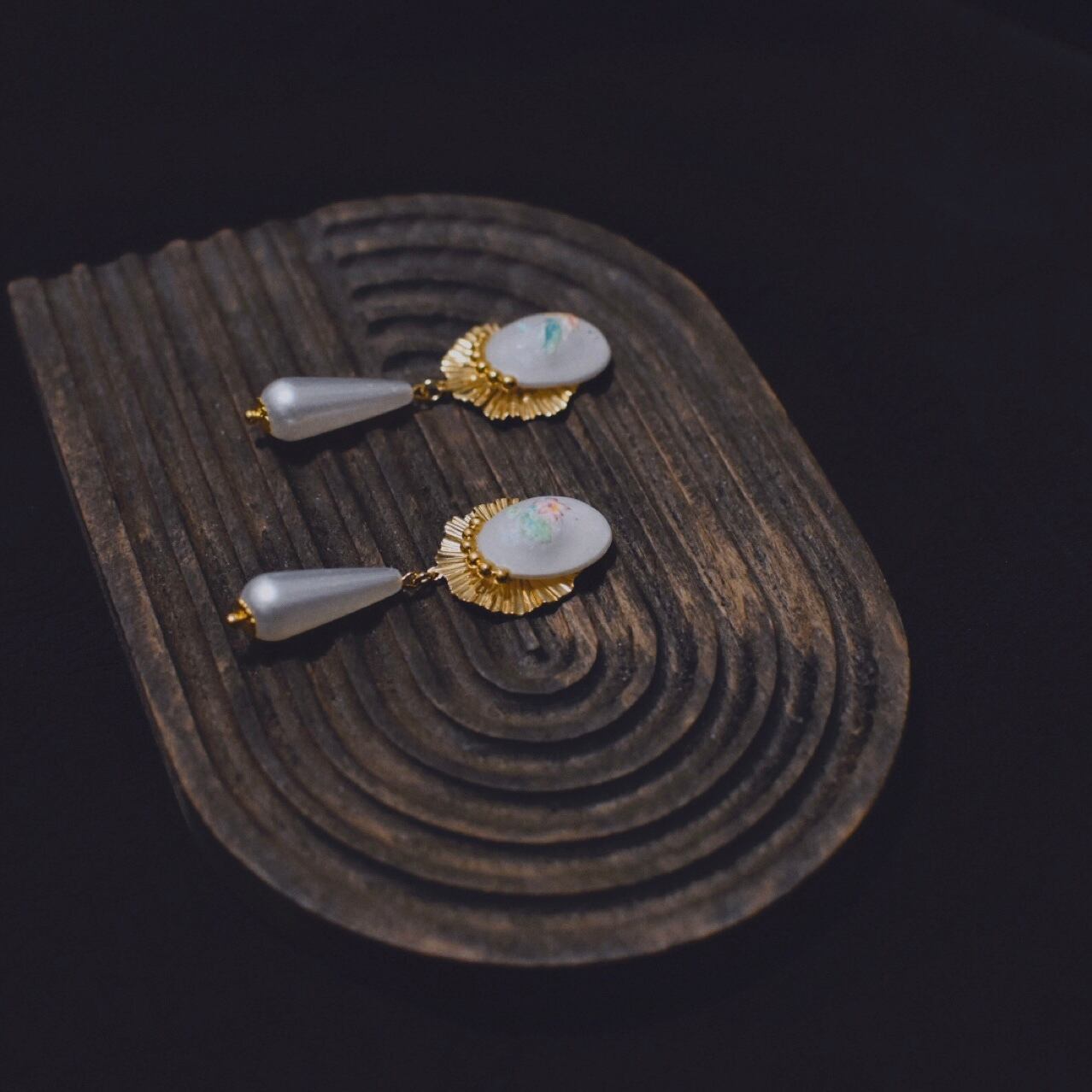 オリジナルのパーツを使った耳飾りです。