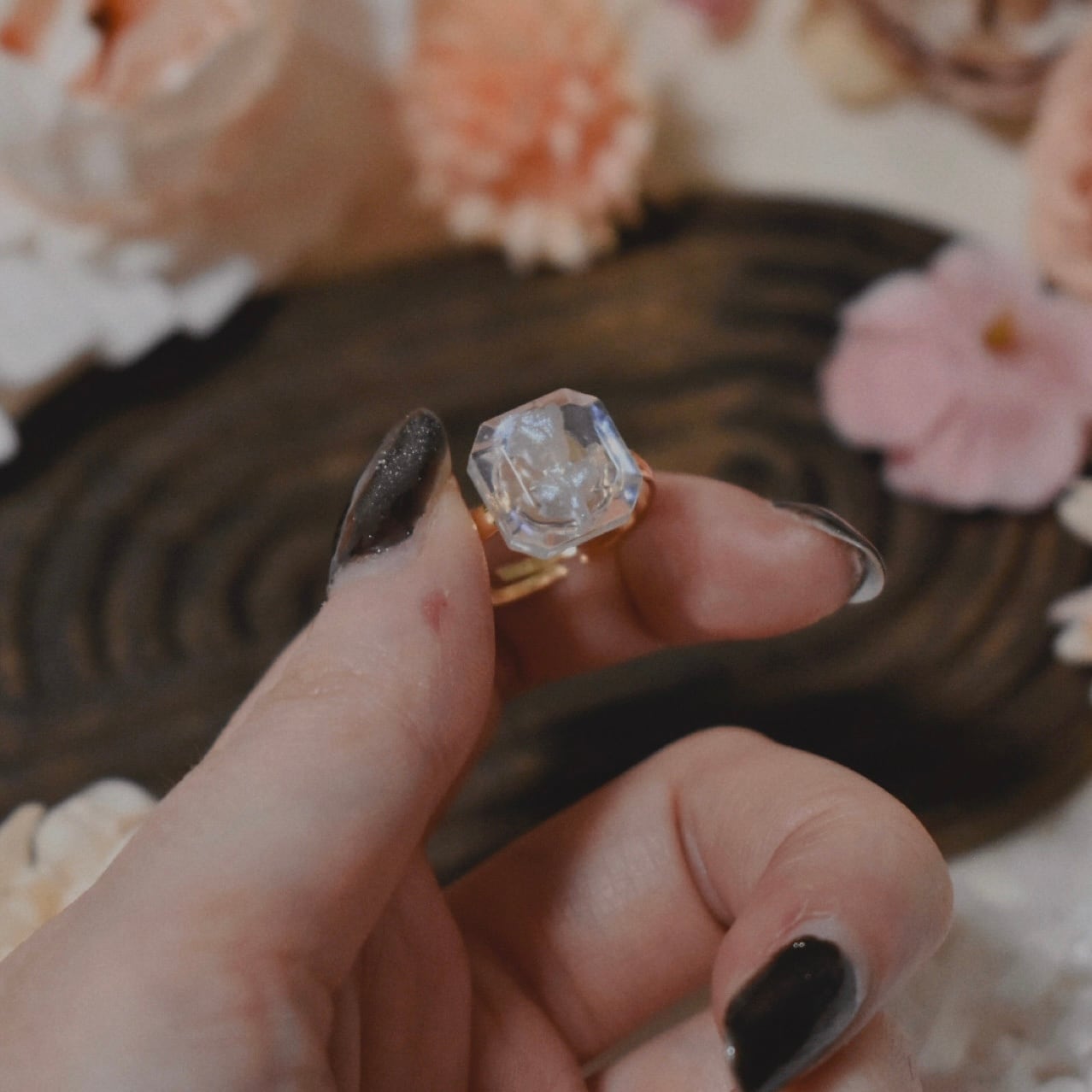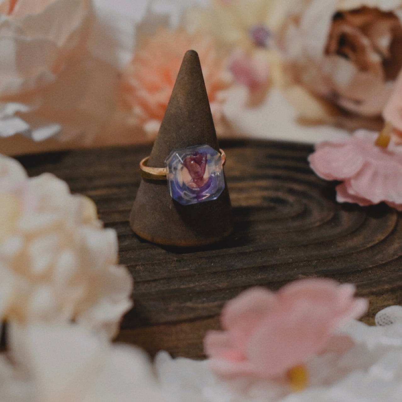 レジンでインタリオ風の表現を模索した指輪です。本物ではございませんのでご注意ください。