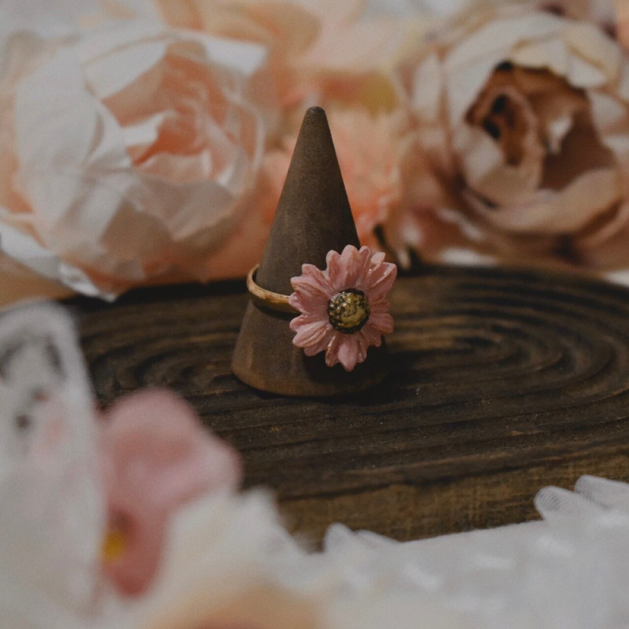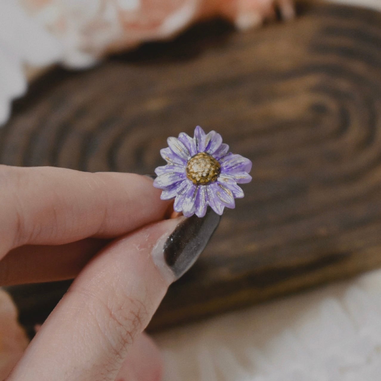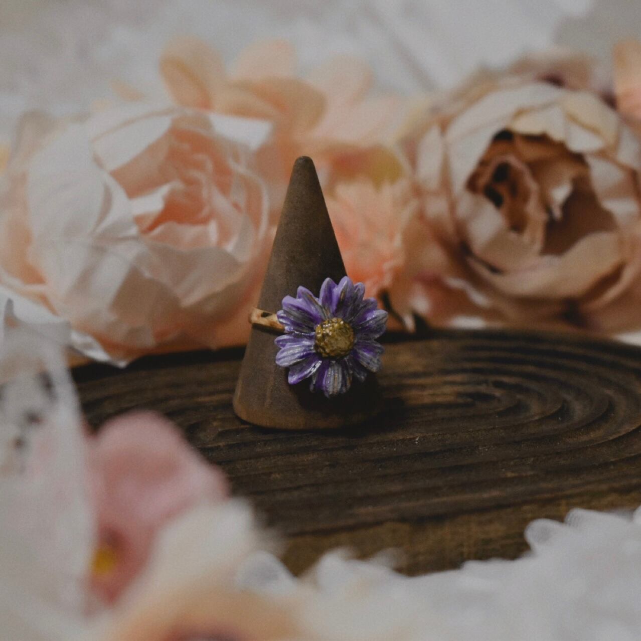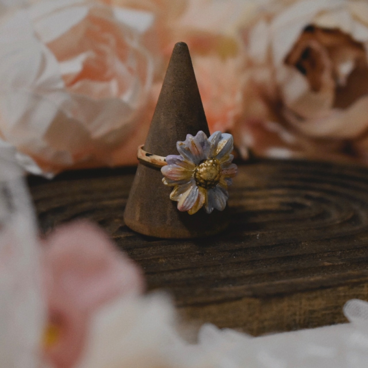 樹脂粘土製の花型の指輪です。