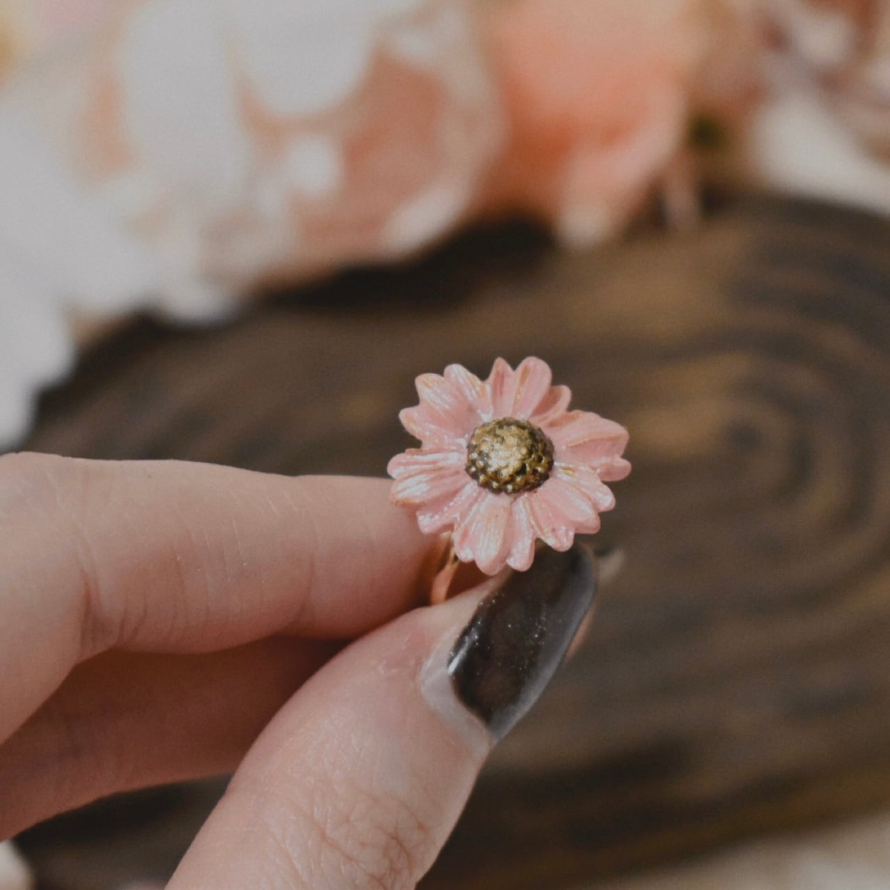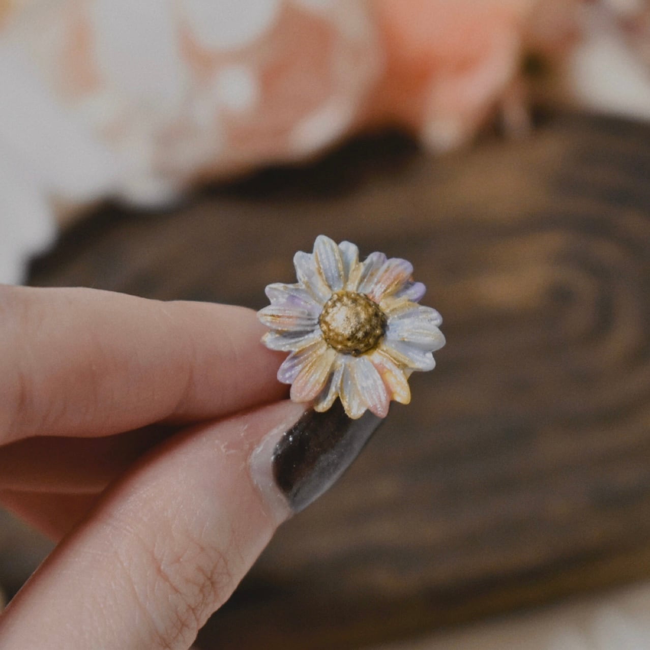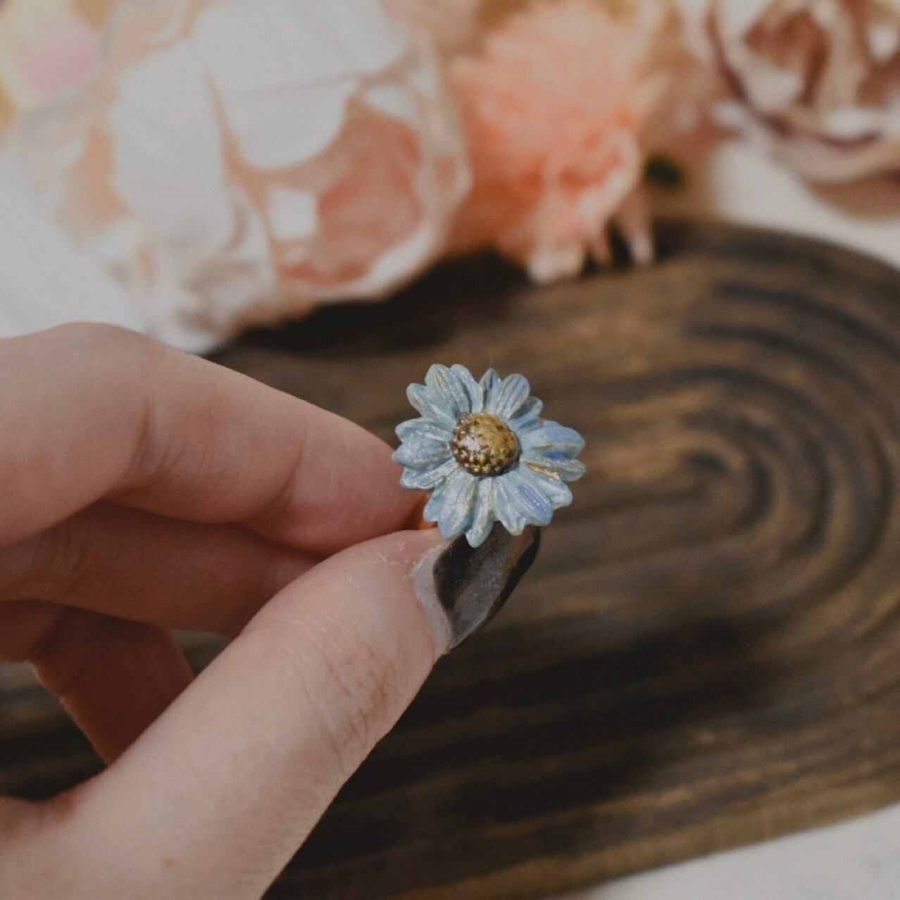 樹脂粘土製の花型の指輪です。