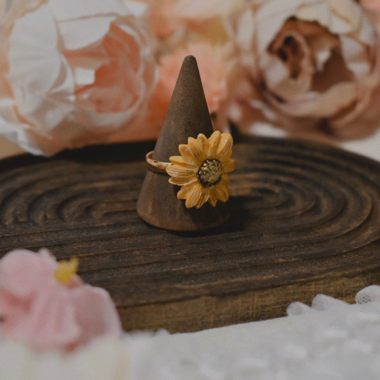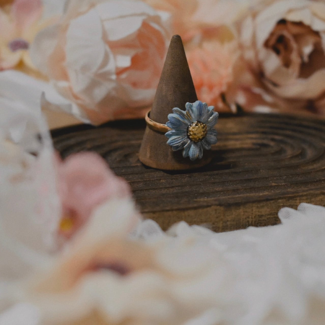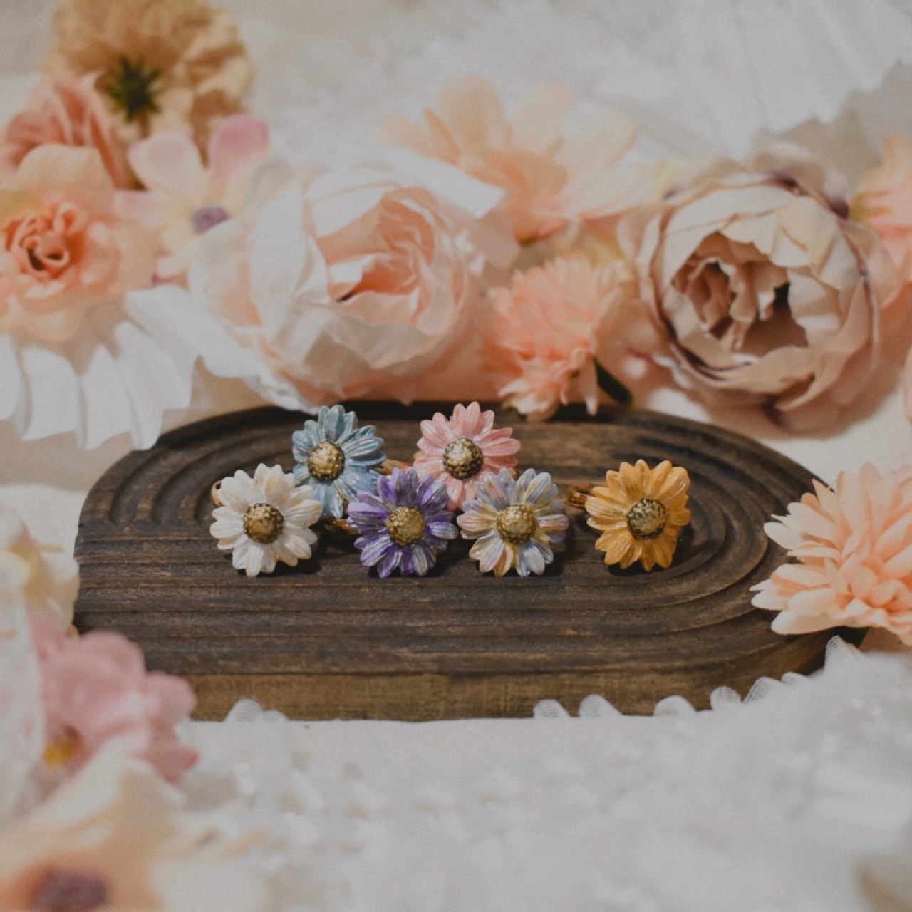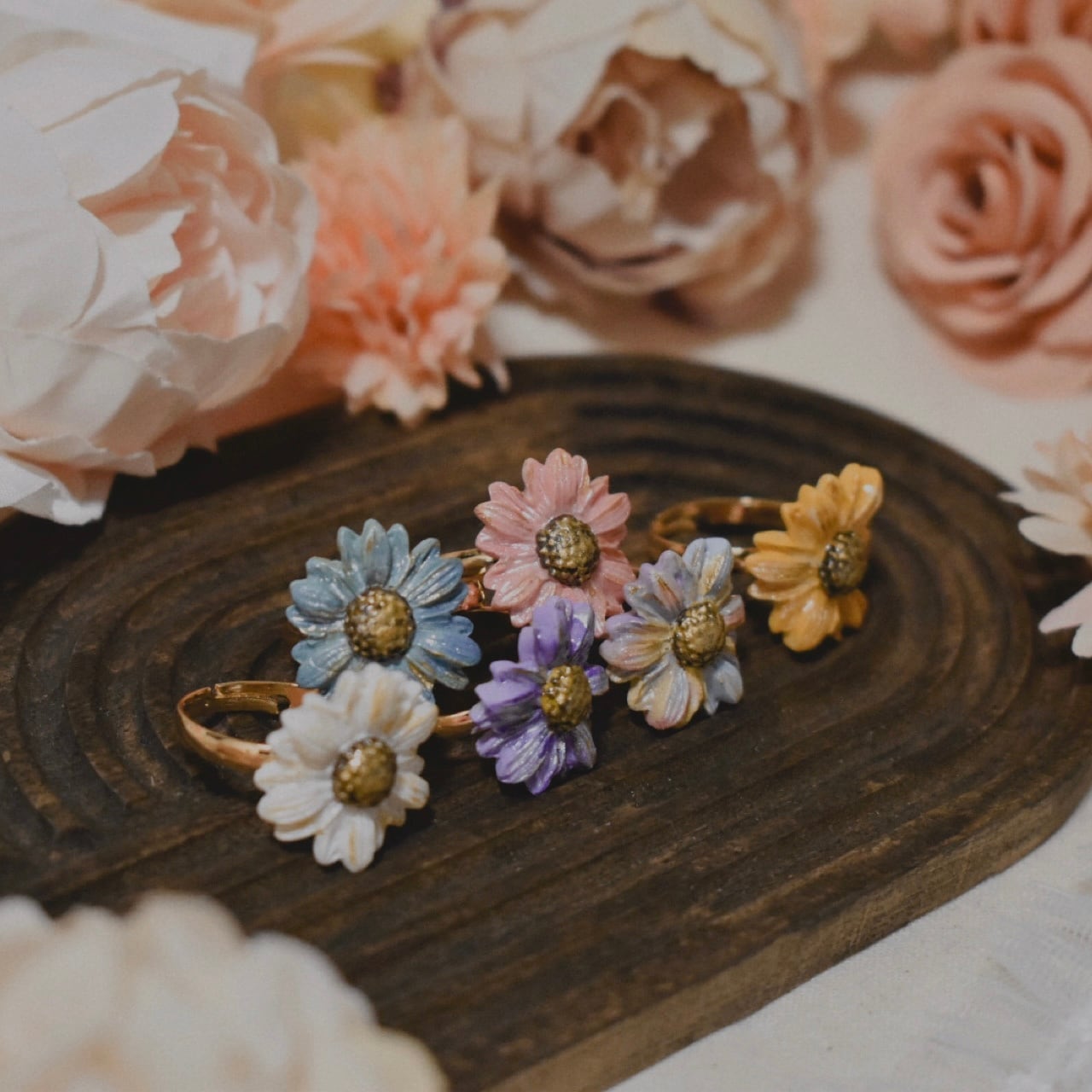 樹脂粘土製の花型の指輪です。
