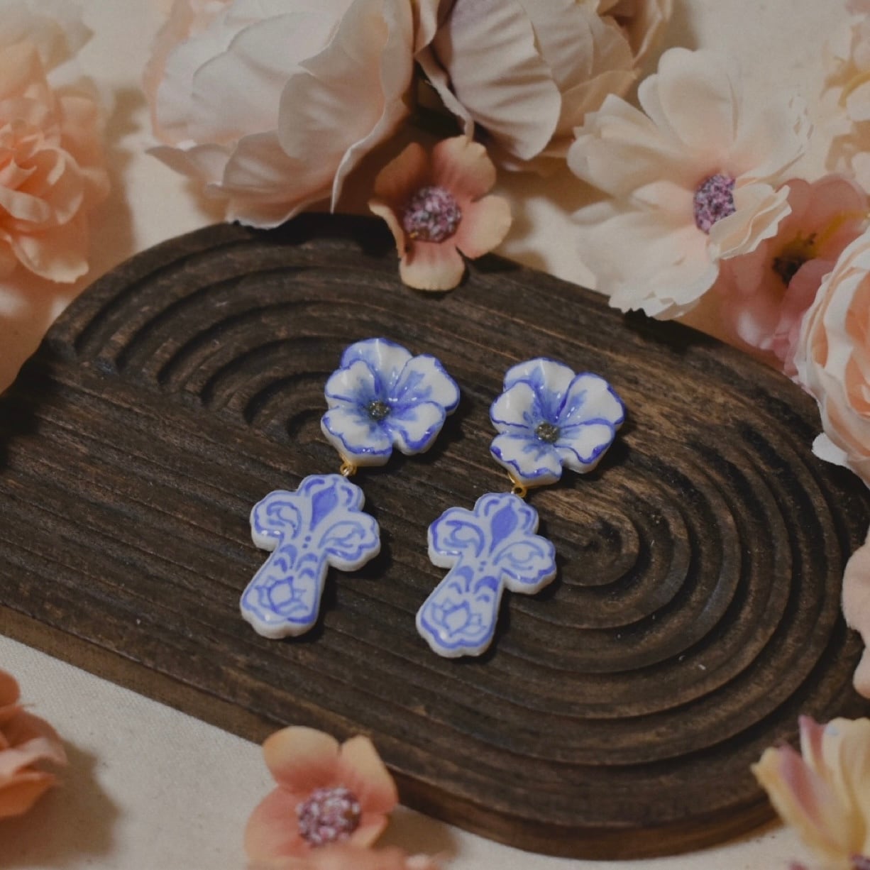 青磁器風な手書き模様の耳飾りです。