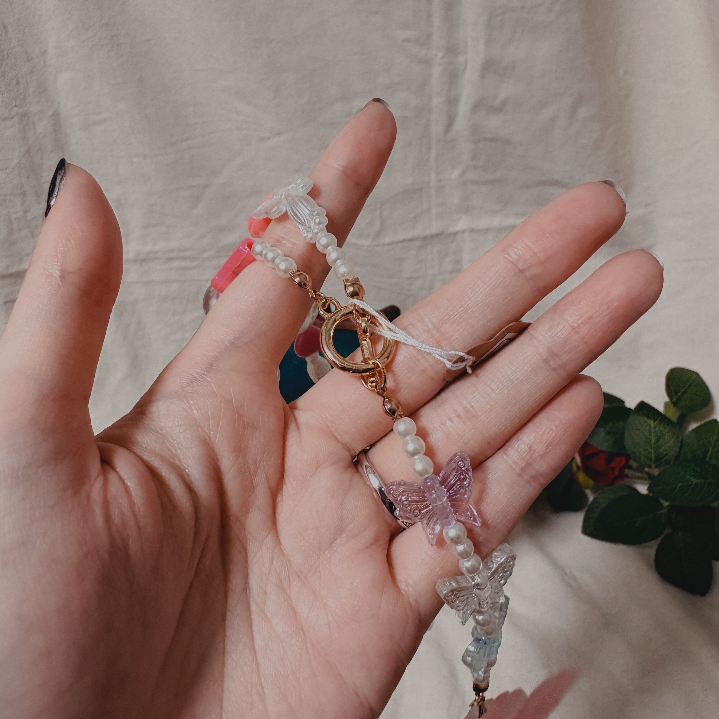 ランダムなビーズを連ねてストラップにした十字架ネックレスです。