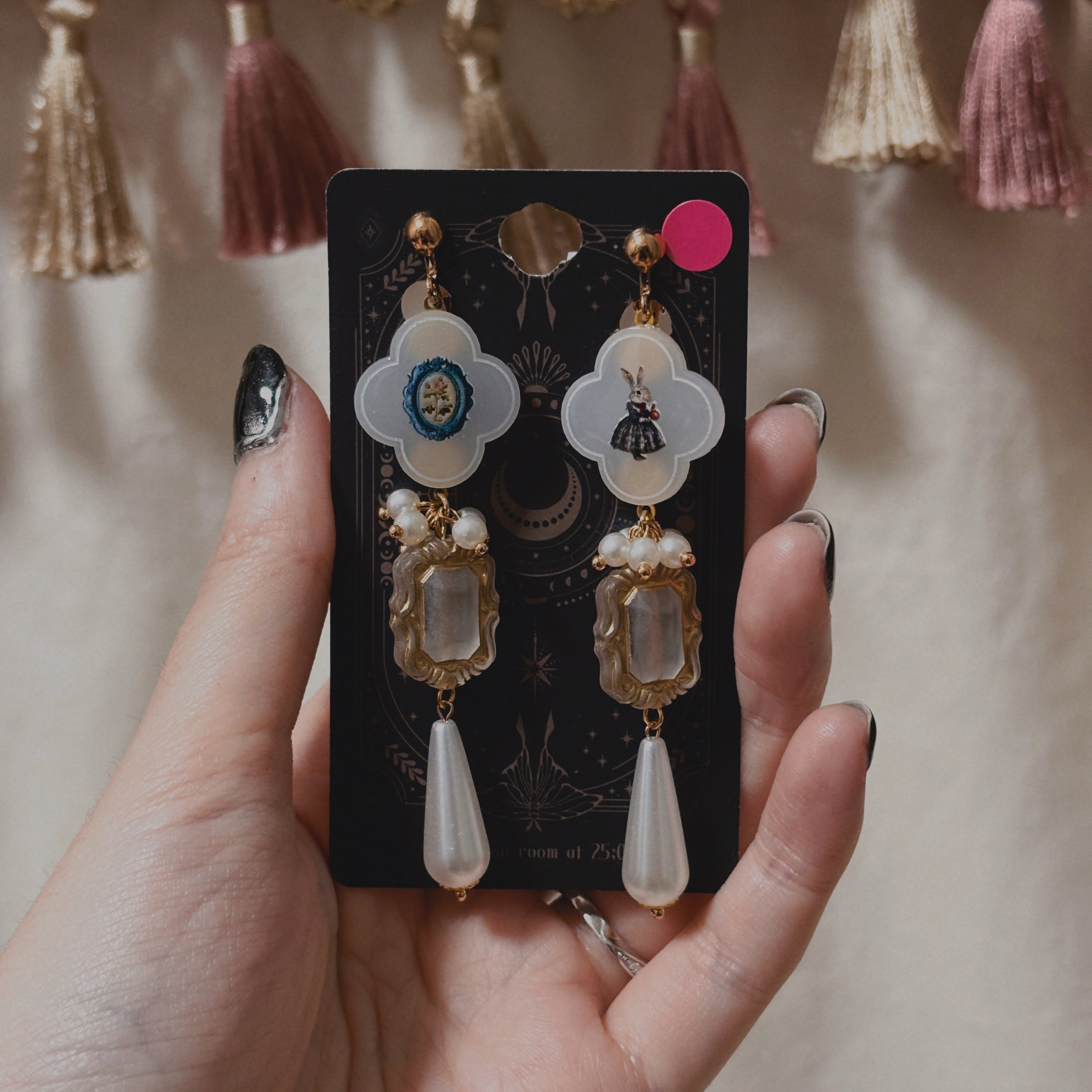 ゴシックなイラストをあしらったタイルパーツの耳飾りです。
